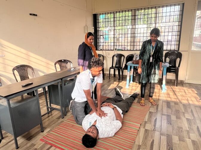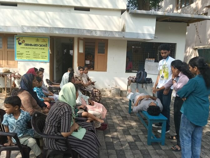 As part of the extension and outreach programme, first-year MSW students, organised a CPR (Cardiopulmonary Resuscitation) training session in partnership with the Thrikkakara Municipality. The initiative aimed to raise awareness and equip community members with vital life-saving skills. The training offered participants both theoretical understanding and practical techniques to respond effectively to cardiac arrest and other medical emergencies. Promptly performing CPR while waiting for medical help can greatly enhance survival chances and save lives.